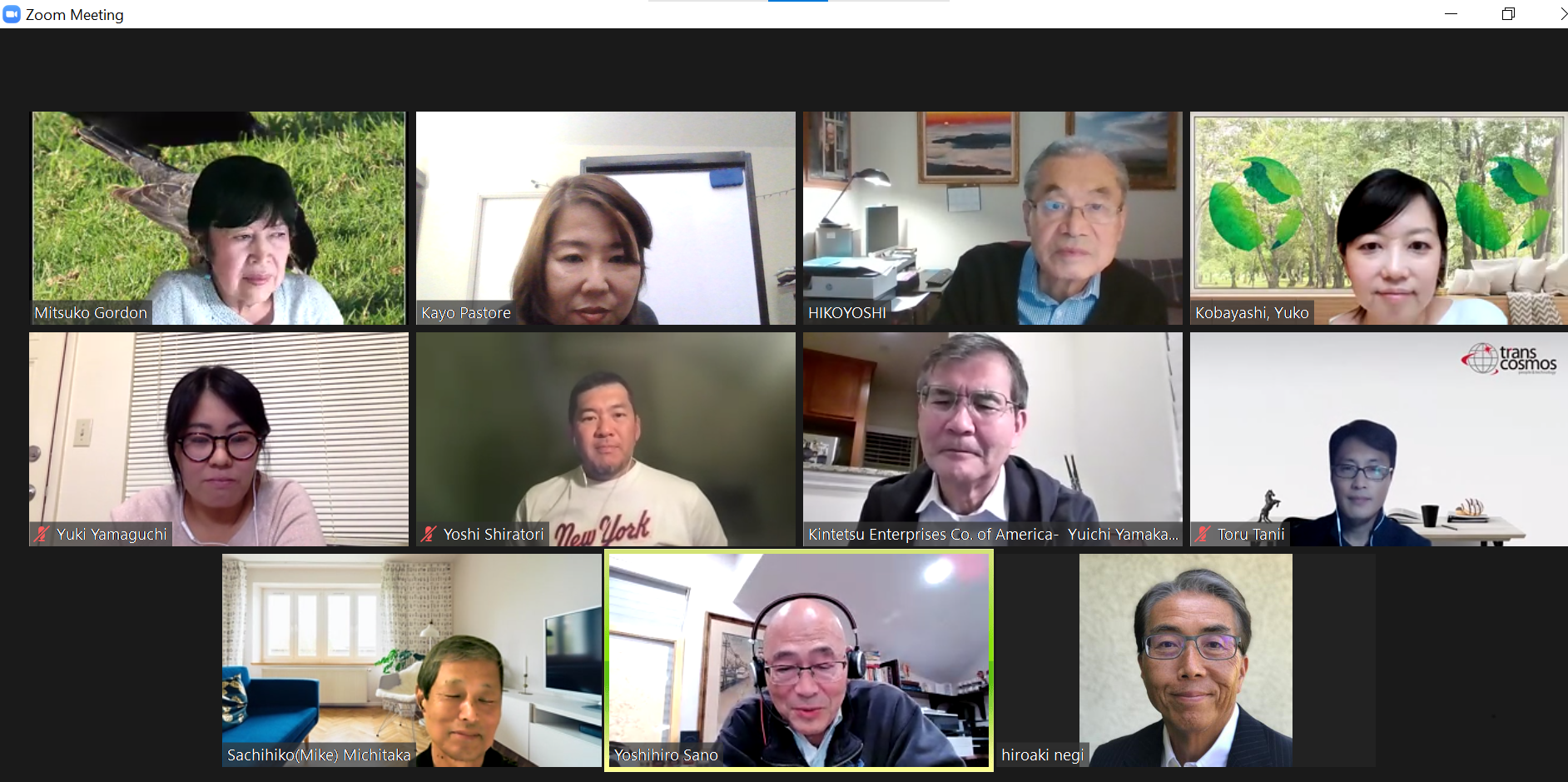 Seattleからは吉田さん、San Franciscoからは道高さん、山口さんにもご参加頂き、LAからは、山川会長、佐野さん、ゴードンさん、根木さん、白鳥さん、小林さん、3月に入会頂いた渓井さん、パストーレの計11名が参加しての楽しい会になりました。
