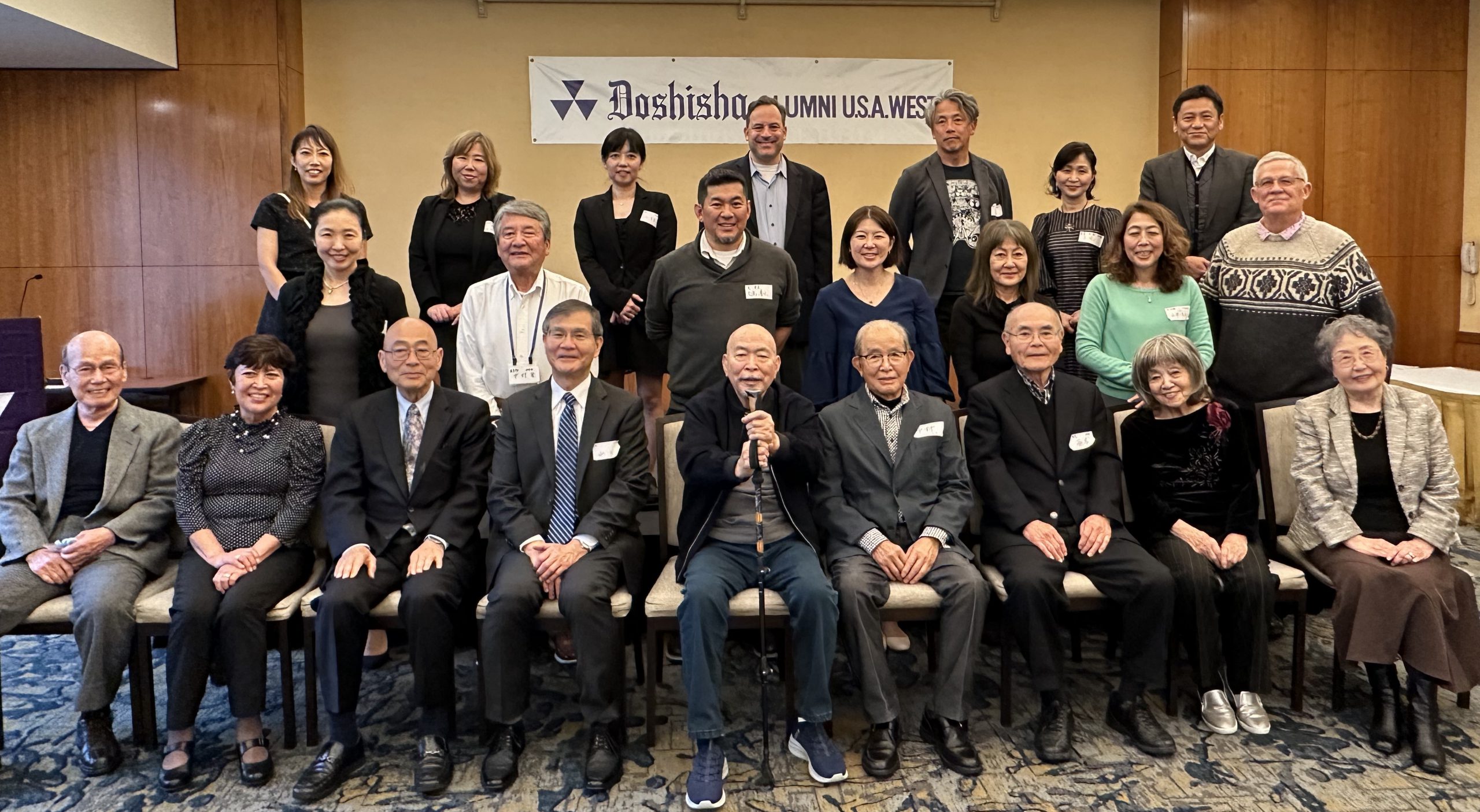 続いて、会食の部は、山田さんの乾杯の音頭で始まり、各テーブルで楽しく食事をしながら歓談、一人ずつマイクを回して参加者全員に自己紹介をして頂き、その後、中村隆さん、谷本さん、山田さんより、JCI の活動についてご紹介頂き、当会の皆さんにも参加のお誘いを頂きました。その後、ラッフルで盛り上がり、MCの小林さんに一等が当たった他、参加者全員に賞品が当たり、大いに盛り上がりました。会は閉会の部を迎え、谷本さんのご挨拶、参加者全員でカレッジソングを斉唱し、今回はトゥーさんのリードの元、同志社チアーで一致団結の後は、記念撮影をして、3時間の楽しい集いはあっと言う間に終わりの時を迎えました。