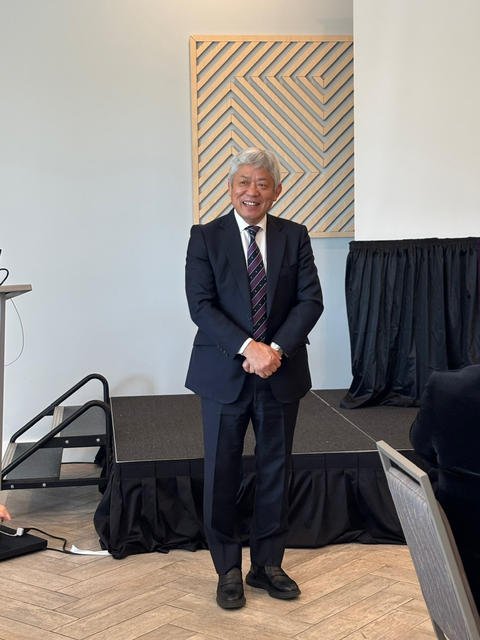 当日は、参加予定であった八田総長兼理事長が急な御公務のため、お越しいただけなくなりましたが、急遽、総長代理として吉岡常務理事にご参加いただきました。